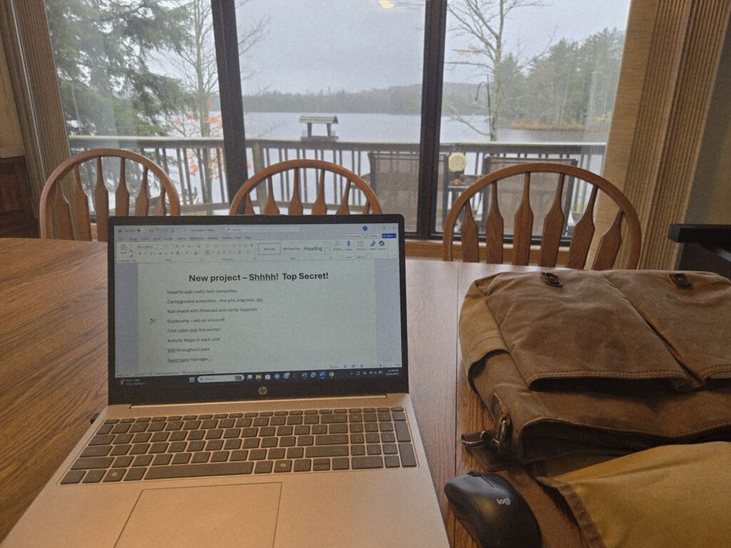 Even with 38° temps, drizzle, and a hint of sleet in the air, today’s Mobile Office at Sandy Lake Lodge is nothing short of beautiful. The view from the second-floor dining table overlooking the lake reminds us that even gray days can be productive ones. Between answering calls, planning updates, and diving into a new project we’ll share soon, we’re making the most of this chilly day. Winter—and that dreaded four-letter “S” word—may be on the way, but for now, we’ll enjoy the calm before the snow. ❄️
